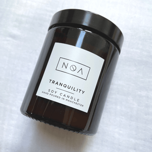 The Tranquility 100% soy wax candle by Manchester based, NOA. This blend of pure essential oils will uplift and brighten the mood in any space - inducing a peaceful, calm state without noise or worry. Housed in an amber glass reusable jar, with it's ingredients and making process both cruelty-free and vegan.